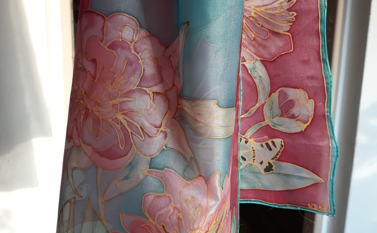 Malované hedvábí pereme ručně v teplé vodě (cca 30°C). Můžeme prát pomocí mýdla, či pracího prostředku určeného na hedvábí. Aviváž není nutné používat.