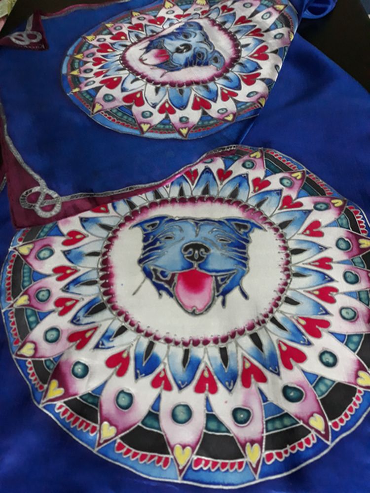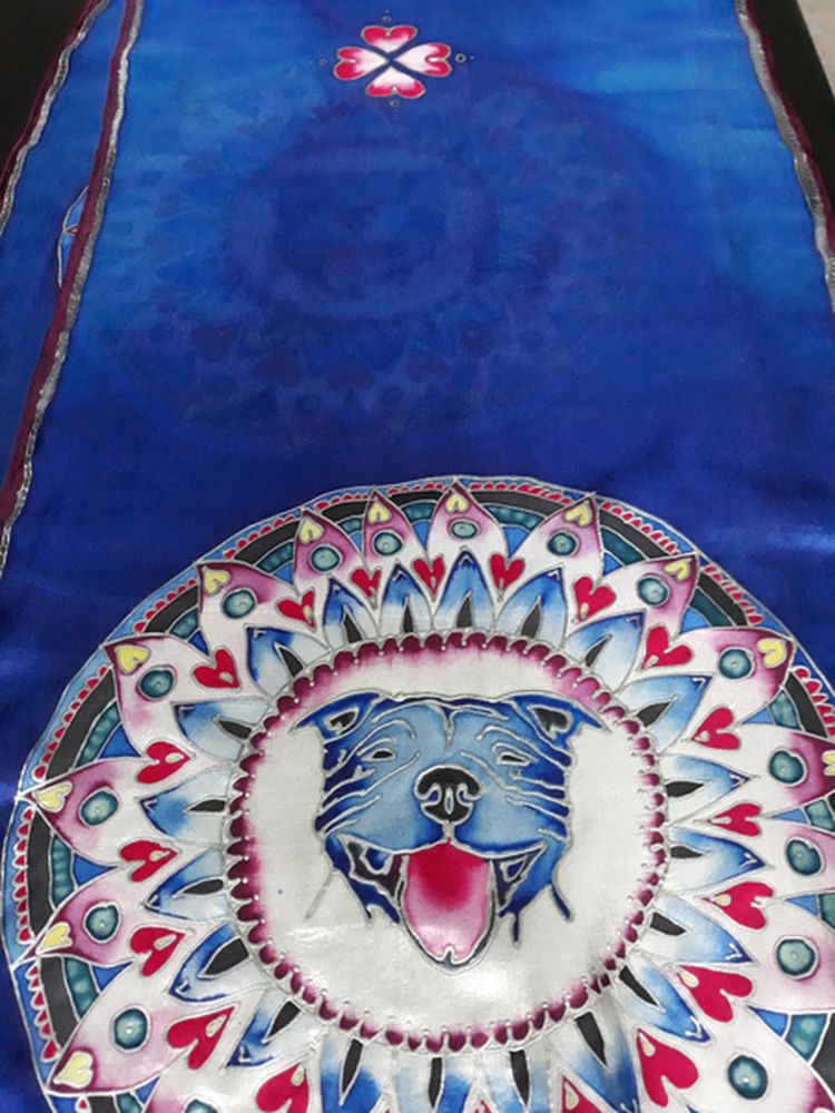 V tomto šálu se snoubí dva světy, které mě velmi baví. Psi, které miluji již od ranných let a malování mandal, které mě uklidňují a uzdravují mou mysl :)