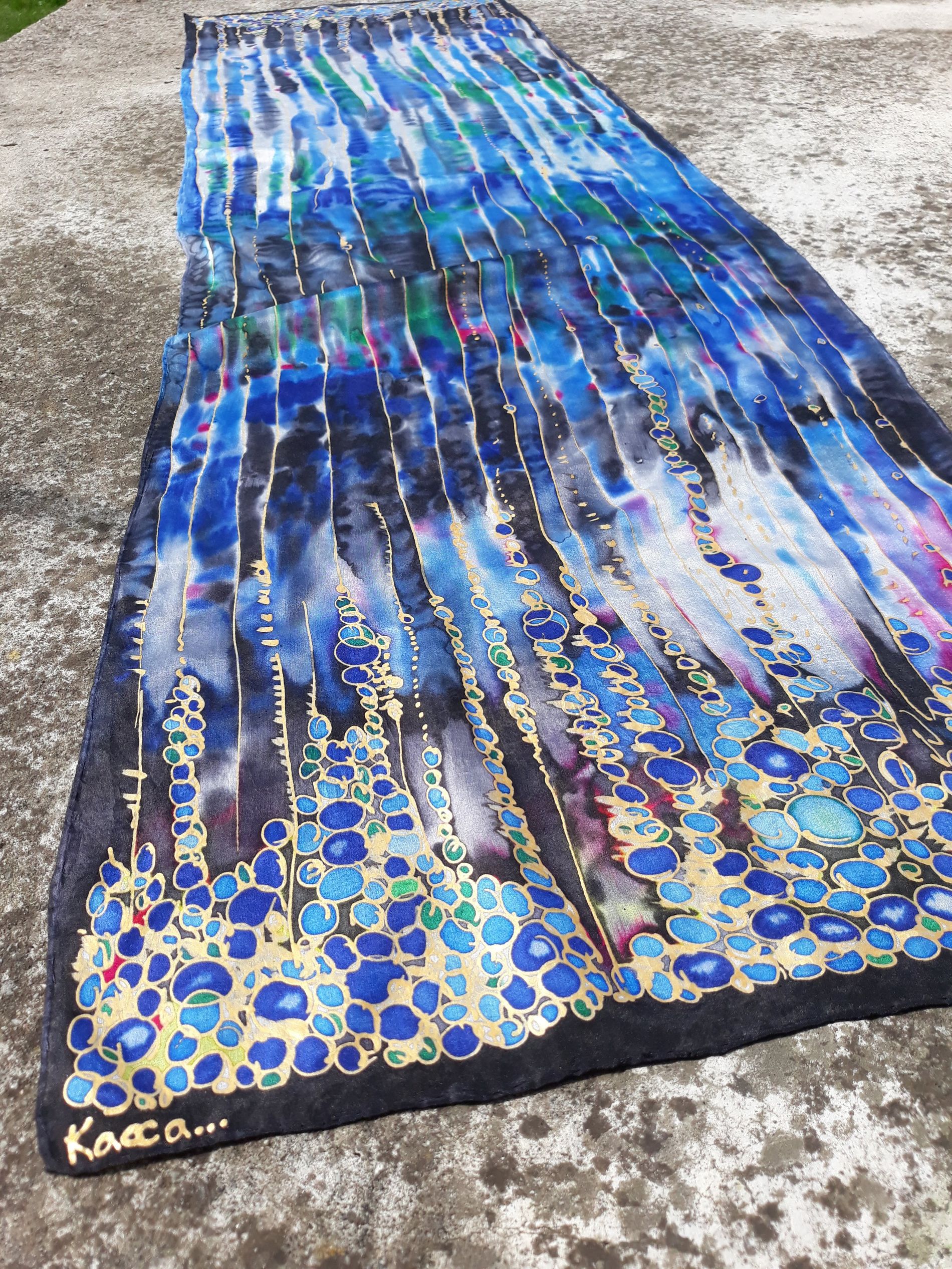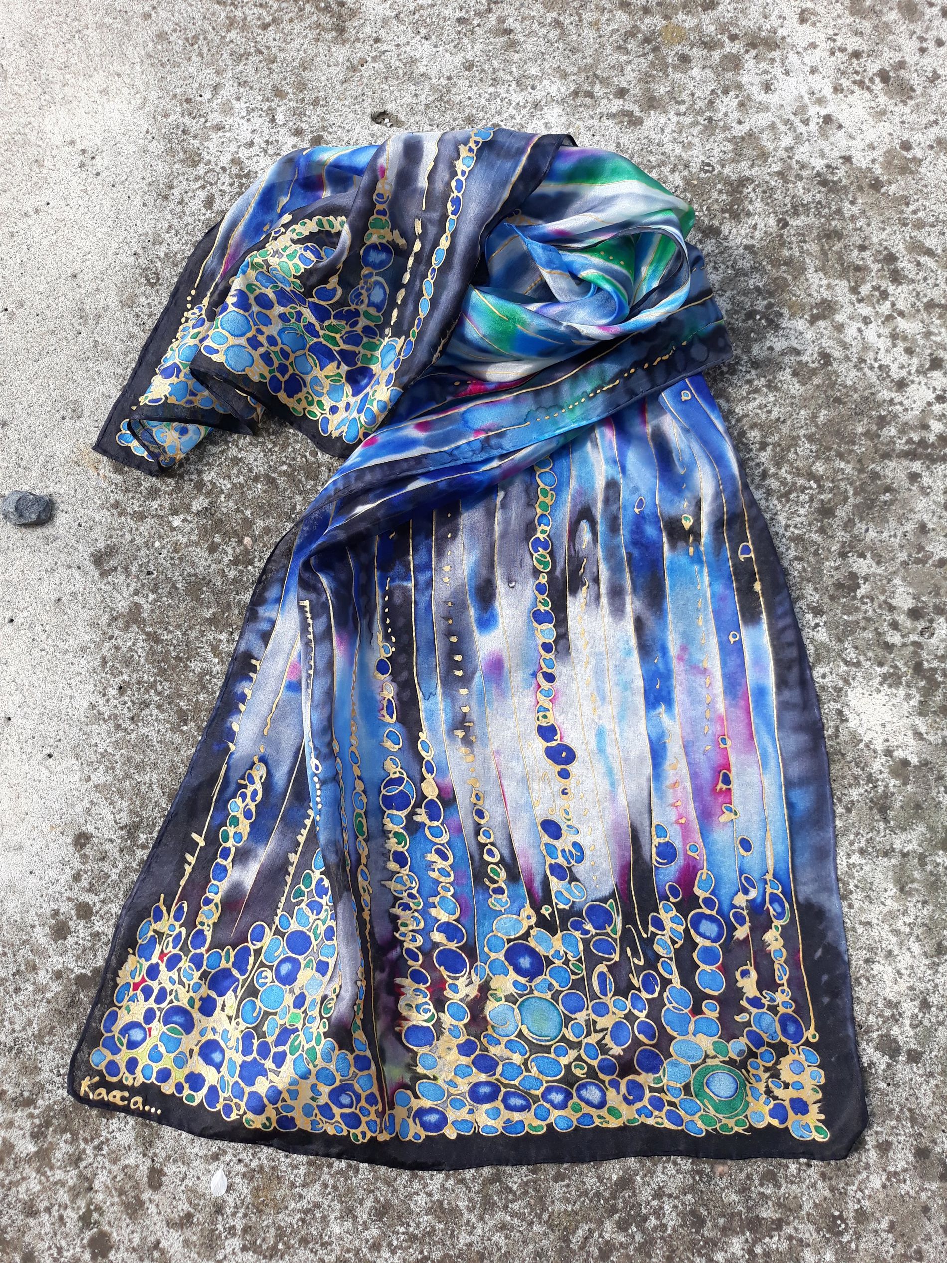V noci jsem nemohla spát, vzbudil mě déšť. Seděla jsem u okna a přemýšlela, jak tu noční nádheru ztvárnit. Kapky deště padaly na okno a světlo z pouliční lampy vše propojilo...