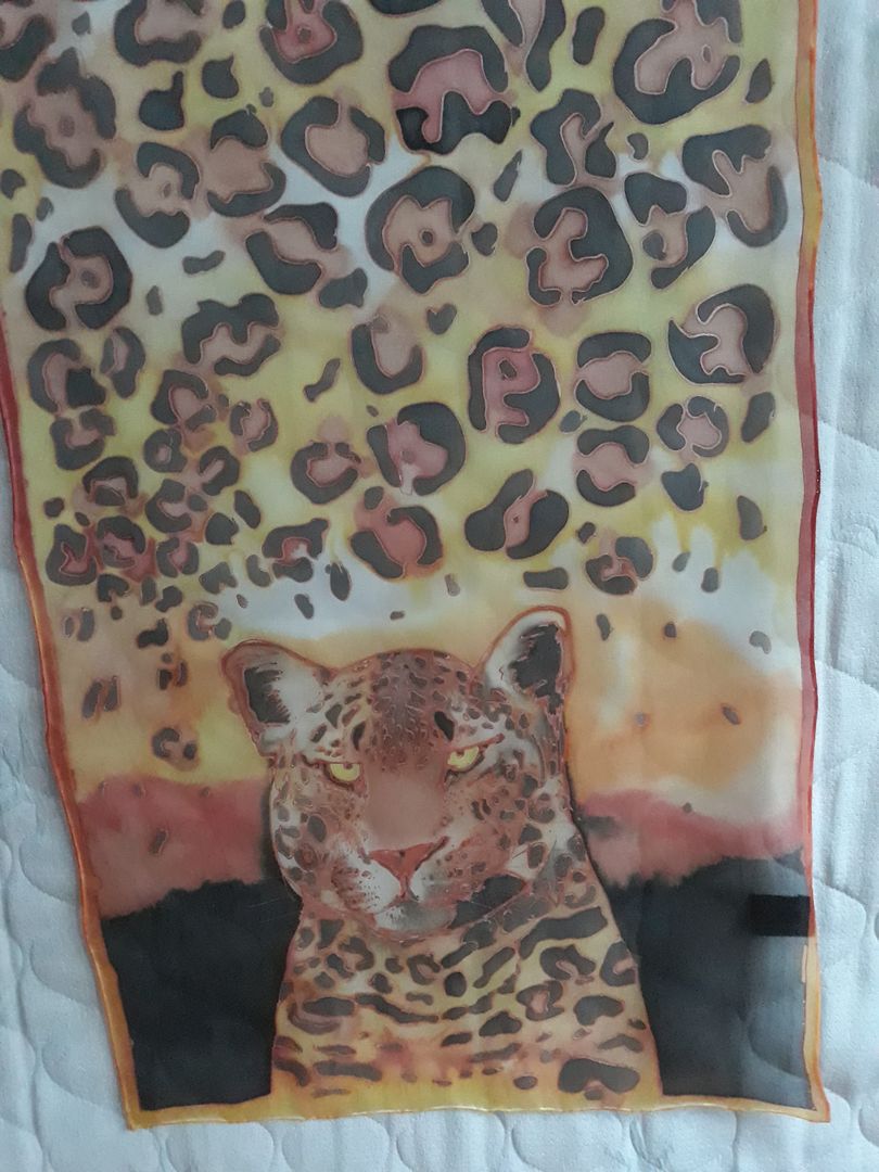 Tento originální kousek byl vyroben na přání. Klientka má velmi ráda zvířecí vzory,které jsou teď velmi v módě. Nevěděla přesně,které africké zvíře by se jí líbilo. Chtěla hlavně nějaké krásné a důstojné,takto to definovala. Okamžitě mě napadl leopard, pan Leopard...